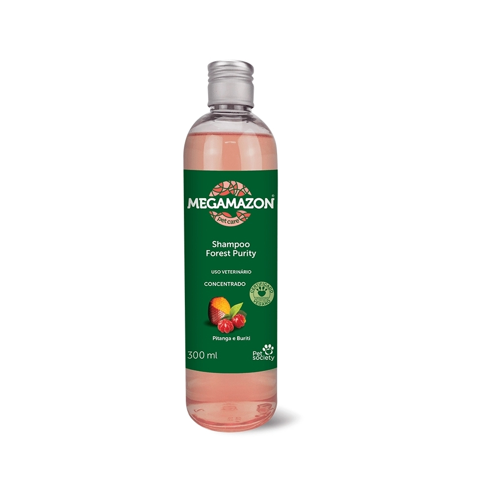 • MEGAMAZON FOREST PURITY CONTÉM ATIVO ESPECIAL DE PITANGA E BURITI QUE NUTREM E PROTEGEM A PELAGEM, PROMOVENDO BRILHO INTENSO