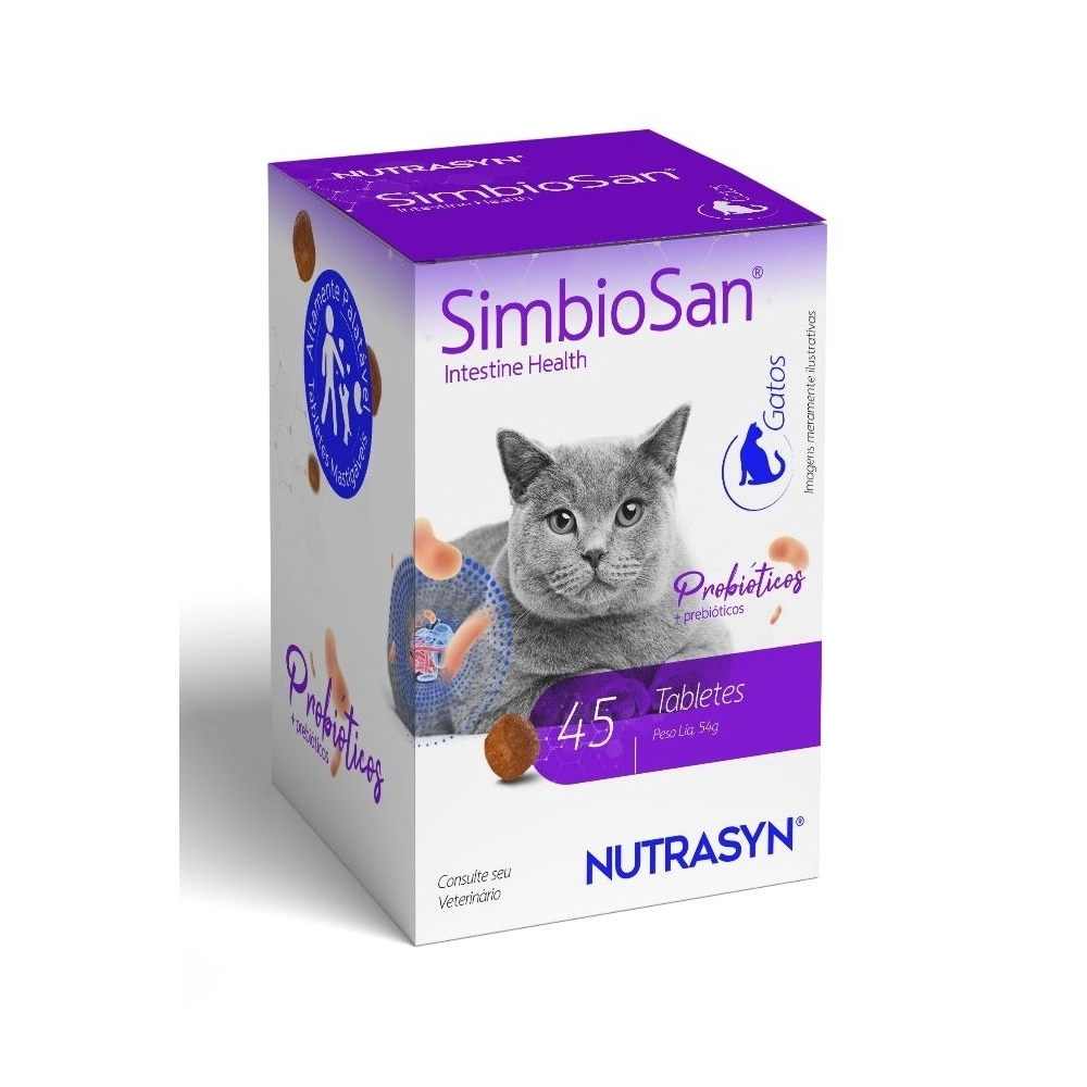 O Suplemento Vitamínico Nutrasyn SimbioSan para Gatos é um produto formulado para gatos e é indicado como auxílio nutricional em todas as fases da vida do animal. Ele contém uma combinação de ingredientes, incluindo parede celular de levedura, levedura inativada desidratada, carbonato de cálcio, Saccharomyces cerevisiae, Enterococcus faecium, Lactobacillus acidophilus, vitaminas do complexo B (B1, B2, B6, B12) e niacina. Esses ingredientes podem contribuir para a saúde geral do gato, auxiliando no fortalecimento do sistema imunológico, saúde gastrointestinal, desenvolvimento adequado e bem-estar em geral.