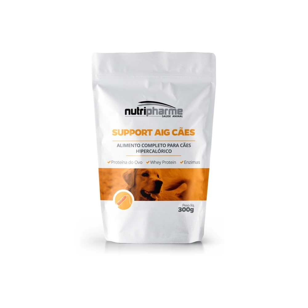MODO DE USAR Utilizar a colher dosadora que acompanha o Support Ai-g® Cães. Dissolver 01 (uma) medida rasa do Support Ai-g® Cães (16g) em 01 (uma) medida de água filtrada potável (28 ml), fornecida em temperatura ambiente. Utilizar o produto imediatamente após a diluição. O excedente não utilizado deverá ser descartado. Usar a tabela de peso e dosagem como orientação no fornecimento. Recomenda-se que o volume diário seja dividido em quatro fornecimentos. Para uma adequada alimentação enteral é preciso verificar o consumo de água que deve ser 60ml de água por quilo de peso ao dia (fornecido por via enteral ou parenteral). Este alimento não substitui o uso da Al-g® na apresentação dos comprimidos.