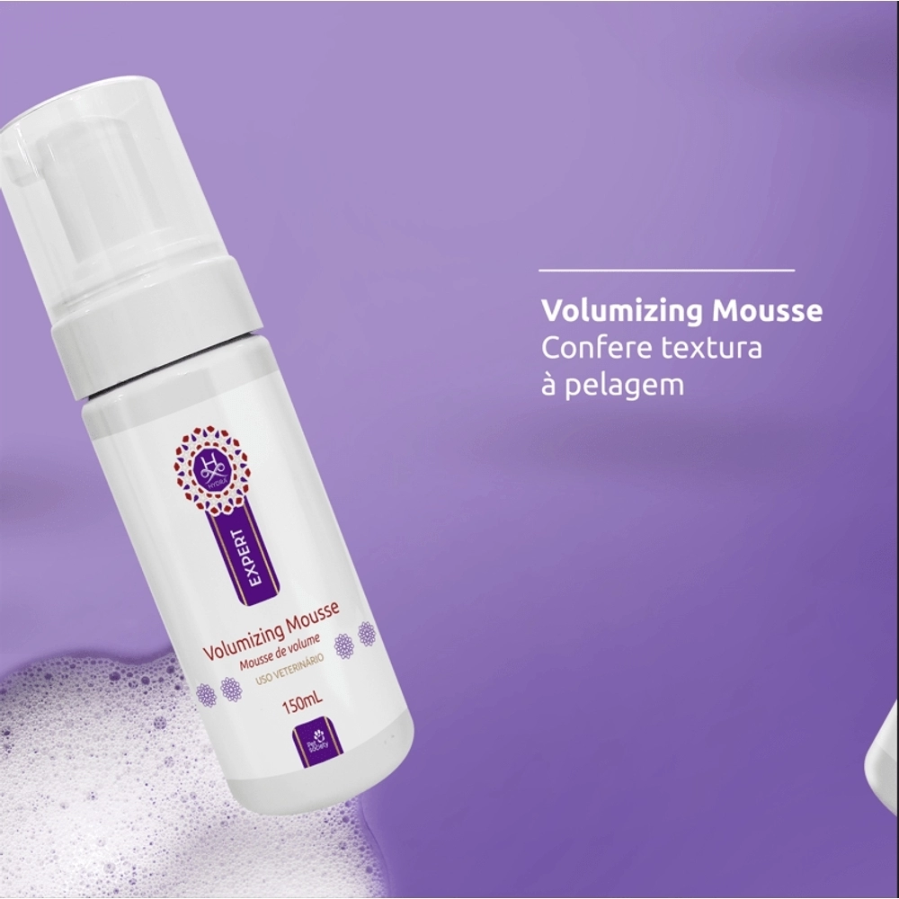 Modo de Uso: Para maximizar o volume, aplique o Hydra Expert Volumizing Mousse nas mãos e espalhe na pelagem úmida ou seca, em todas as áreas desejadas. Não enxágue. Seque completamente e escove contra o pelo.