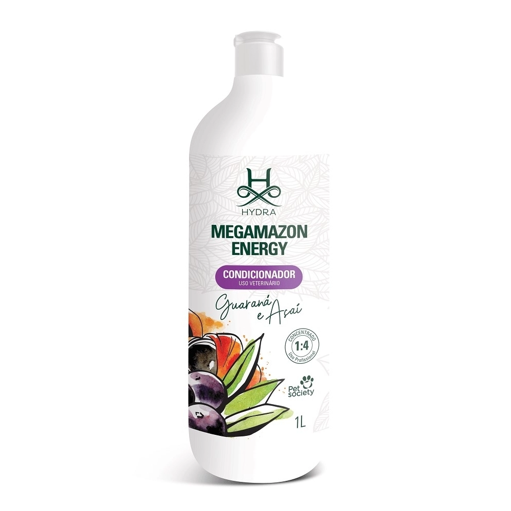 Uso tópico. Diluir o Hydra Megamazon Energy Shampoo em até 10 partes de água e aplicar o produto, massageando bem até formar uma espuma uniforme. Enxaguar e, se necessário, repetir a operação. Diluir uma parte do Hydra Megamazon Energy Condicionador em até 4 partes de água e espalhar por toda a pelagem, no sentido do crescimento dos fios. Enxaguar e secar. Finalizar com a Hydra Megamazon Energy Colônia.