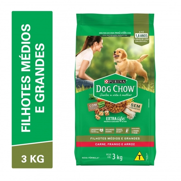 NESTLE PURINA>PURINA - PREMIUM DRY DOG>DOG CHOW EXTRA LIFE FILHOTES MÉDIOS E GRANDES 5X3KG