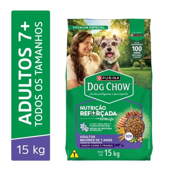 NESTLE PURINA>PURINA - PREMIUM DRY DOG>DOG CHOW EXTRA LIFE LONGEVIDADE ADULTOS 7+ TODOS OS TAMANHOS 15KG