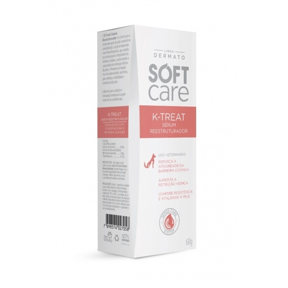 O Sérum Soft Care K-Treat Reestruturador é fundamental para realização da reestruturação da pele sensível ou sensibilizada. Reforça a integridade da barreira cutânea e contém extrato de aloe vera. Seu amiguinho terá o cuidado especial que ele merece, além de ficar com visual renovado, pronto para arrasar por onde for.