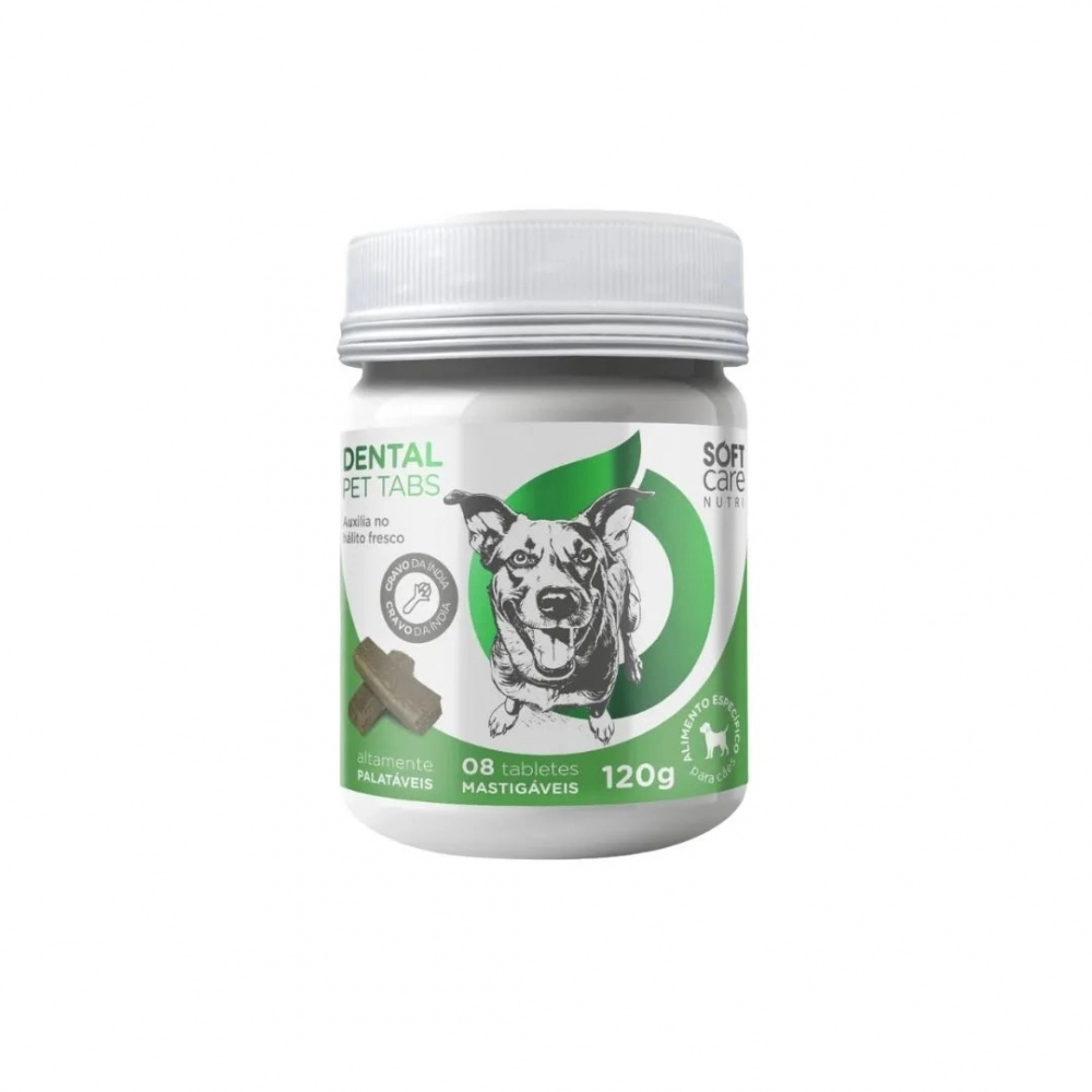 SOFT CARE NUTRI DENTAL PET TABS é um alimento específico que contribui com a higiene oral, auxiliando no halito fresco. Produto indicado para cães em todas as fases da vida.